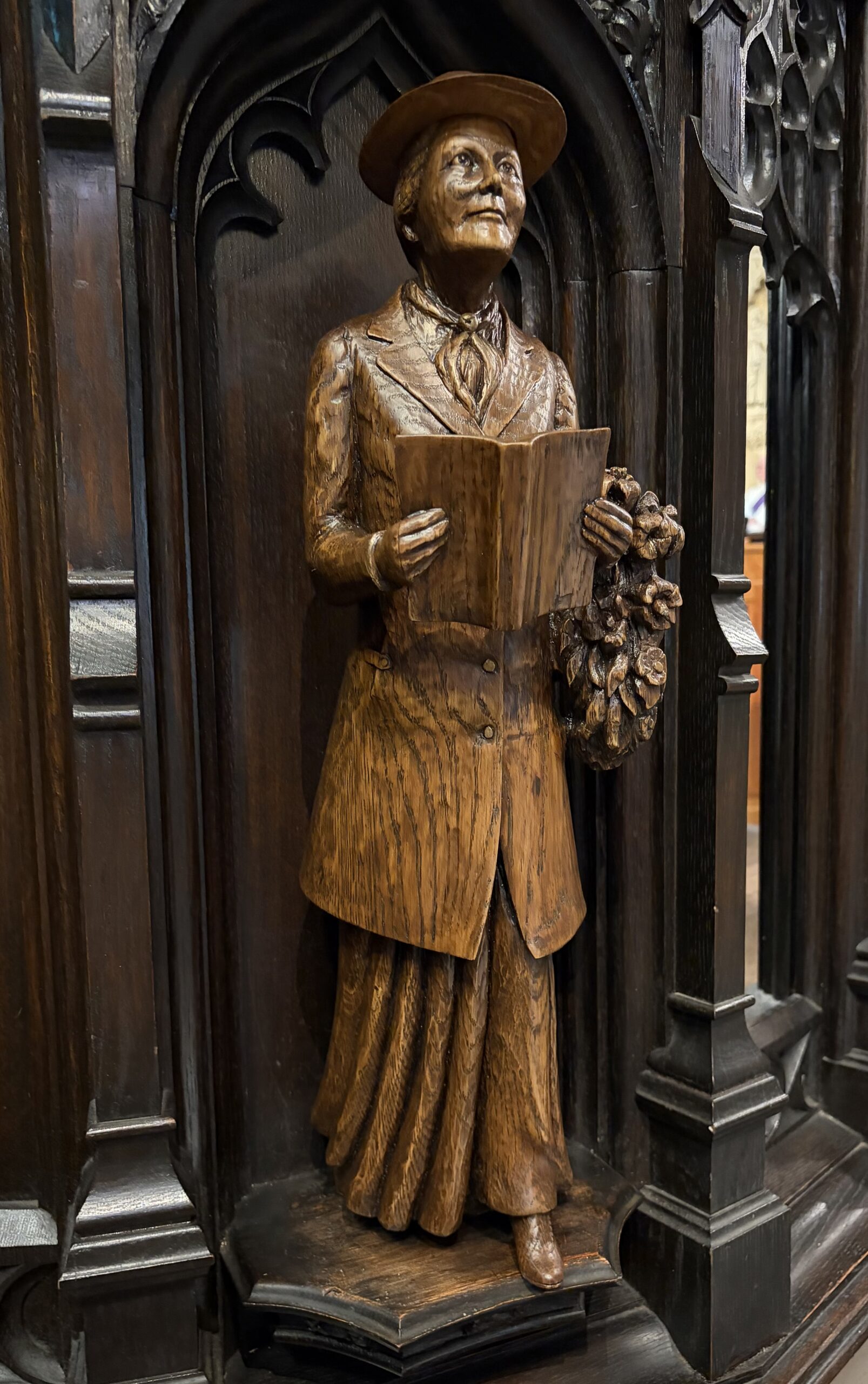 H1. Statues of the Rev. Dr. Pauli Murray (1910-1985), the Rt. Rev. Barbara Harris (1930-2020), the Rev. Dr. Suzanne Hiatt (1936-2002), and Vida Dutton Scudder (1861-1954) were sculpted in white oak by our Artist-in-Residence Ted Southwick. They were dedicated in 2023-2026..