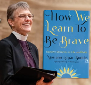 In her book, How We Learn to Be Brave (New York: Avery/Penguin Random House, 2023), Bishop Budde writes about being inspired by people of faith facing decisive moments in life. Among her cloud of witnesses are The Rev. Canon Kelly Brown Douglas, Presiding Bishop Michael Curry, Dr. Howard Thurman, The Rev. Dr. Pauli Murray, The Rev. Dr. Martin Luther King Jr., and Thurgood Marshall.
